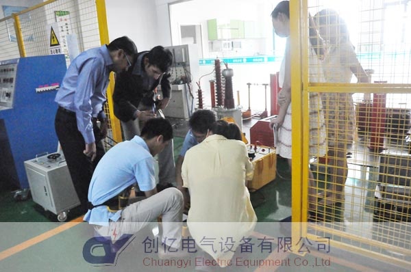 此次他們來我公司主要考察互感器類和SF6測試儀系列產品,他們用了整整一天的時間詳細的了解了這兩個系列產品的功能特點及使用方法,我公司技術人員現場演示了這些儀器操作的全過程,在演示過程中,他們不斷的提出他們的疑問,我公司技術人員耐心的對他們的提問進行了詳細的解答。