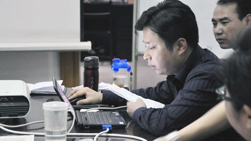 全神貫注與劉工的講解中