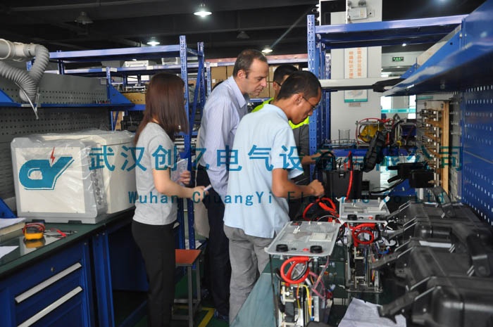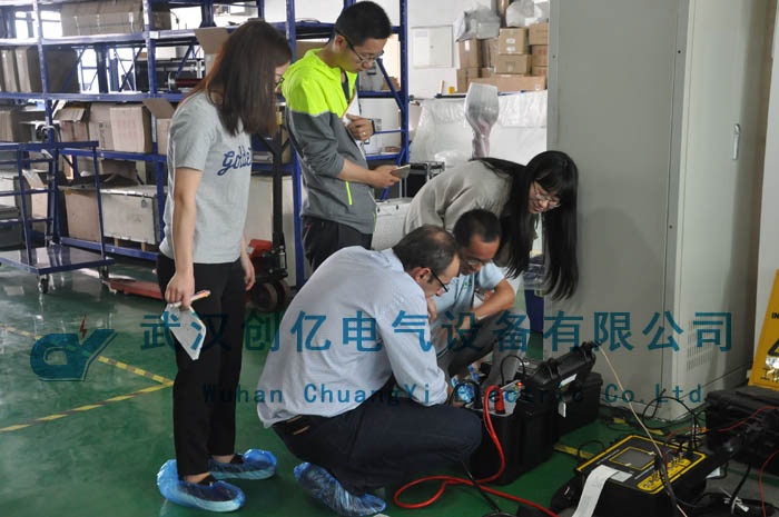 日前,南京海興在我司訂購一批CYHL-200 智能回路電阻測試儀、CYKC-6A 高壓開關動特性測試儀以及CYYD 系列 工頻耐壓等一批設備。由于此設備用于巴西,近日,其巴西地區負責人前來我司進行產品驗收工作,并學習設備的使用。