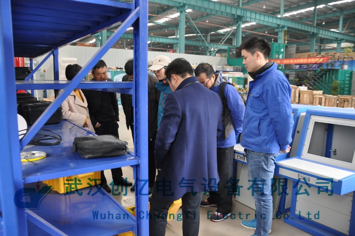 我司接待人員于火車站接到客戶后,即前往我司生產廠房進行了參觀。在參觀的過程中,客戶詳細了解了我司的GIT以及耐壓等設備,并對我司的安全工器具系列的產品表現除了極大的興趣。最后參觀了我司正在生產的大電流設備。