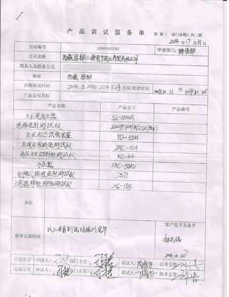 2014-10-20 石家莊誠(chéng)峰熱電廠進(jìn)行調(diào)試服務(wù),調(diào)試產(chǎn)品: