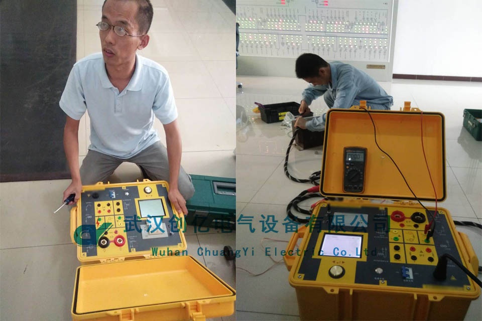 在進行CYF-3000的調試培訓中,首先將分析儀的正負極接線到直流屏的負載線的正負,地接直流屏地排,儀器顯示有負接地,后面用探測儀發現有一條支路有接地故障的試驗也順利完成。