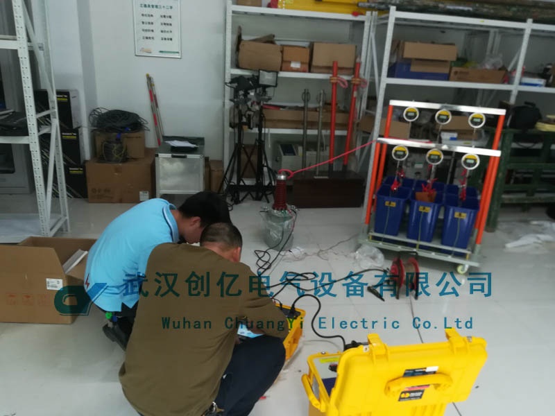不久前,我司在接到長沙某客戶的調試邀請后便立即安排技術人員前往客戶處調試培訓其購買的一套絕緣手套靴耐壓裝置。