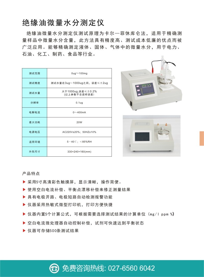3. 測試水量大于1000ug,誤差≤±0.2%(以上參數不含進樣誤差)