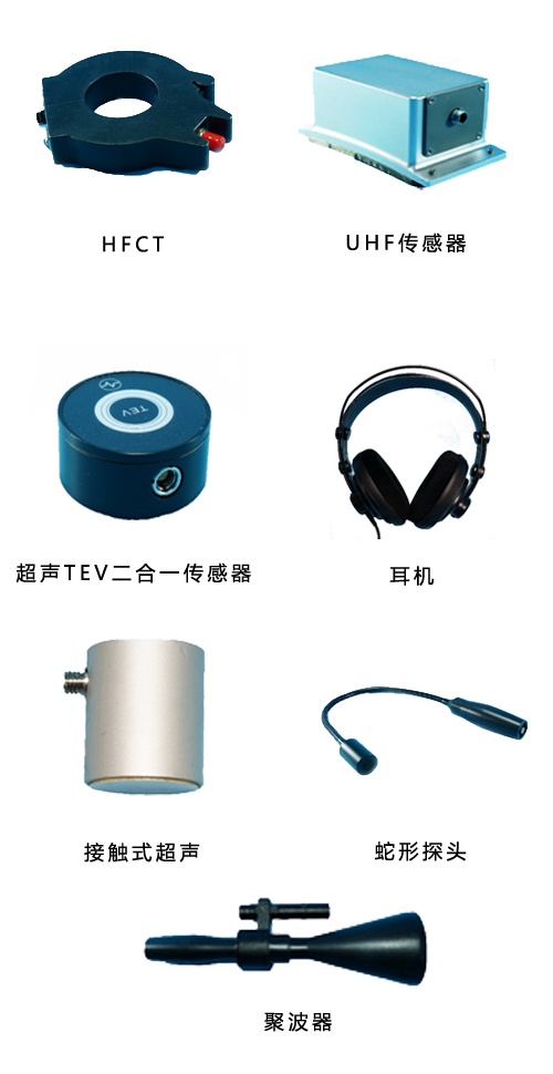 (2) 超聲波檢測功能檢測主機內置非接觸式空聲傳感器,使用超聲波法檢測開關設備的放電活動; 超聲波常用于超聲波遠距離局放巡檢、超聲波氣體泄漏檢測、超聲波局放定位、開關柜的局放檢測。