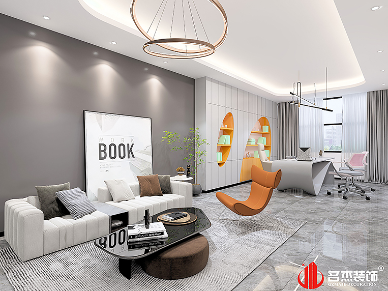 在展廳區(qū)域設計當中采用了相當吸引眼球的色彩去作為主色調(diào),同時工業(yè)風的吊頂在色彩強烈的對比下,形成了一個非常有特色的空間。整體空間采用的是時尚潮流的風格,加上原木的元素來增加空間的自然感,感到潮流的同時,還能感受大自然帶來的舒適感。