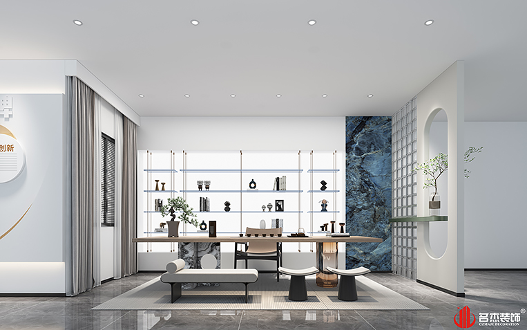 整體服裝辦公裝修設計空間的設計風格是采用時尚潮流的元素來進行設計,在門頭空間加入了銀白色的主調,加入了部分黃色作為空間的點綴色,讓空間的點綴有著不一樣的亮眼元素。室內的空間里面在不同的位置里,都加入了類似屏風的元素作為分隔空間的隔斷,傳統要素的加入,也讓空間變得更加有韻味。#廣州辦公室裝修設計公司#