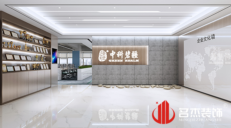 設計團隊根據行業特性和企業需求,將企業文化和品牌意識融入到整個裝修設計的環節當中。整體設計風格是現代簡約風格,利用簡約的時尚元素進行合理的搭配,讓空間中透露出一絲絲時尚且優雅的氣息。同時傳統的黑白灰色調作為主色調,在加入原木色調作為點綴色,也能很好的表達出綠色環保的設計要素。