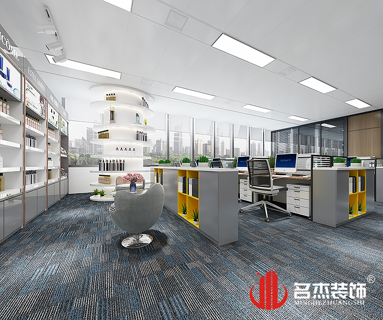 本辦公室裝修設計案例是美業類辦公企業,是一家集化妝品研發和生產的科技型創新公司。設計團隊以簡約時尚的風格來作為整體的設計基調,使用黃色跳色來作為整個空間的點綴色,讓空間的設計感一下子就出來了,也顯得空間更加有層次感。