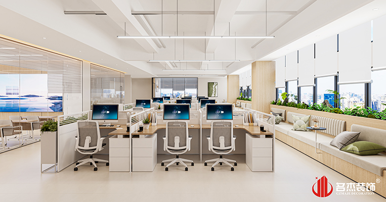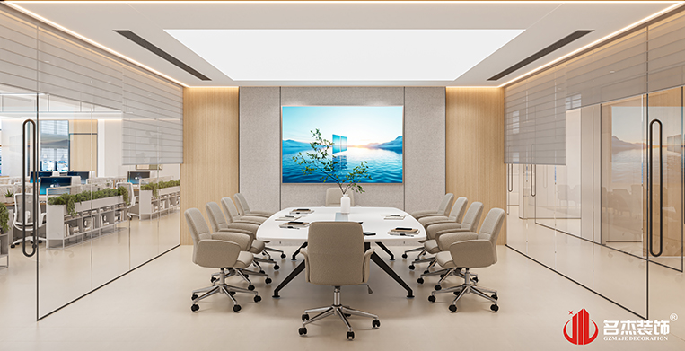 設計團隊在整體辦公室裝修設計空間中多次使用弧形元素,讓空間充滿著更多的設計層次感。同時根據客戶的行業定位,在空間中引入一整顆綠植,讓空間充斥著綠植的元素,也帶來更多大自然的氣息。#廣州辦公室裝修#