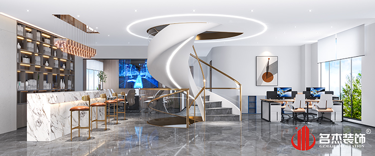 考慮到企業(yè)是以銷售為主,簡約的風(fēng)格是可以讓辦公室裝修設(shè)計(jì)空間看起來更加干練,同時沒有過多的裝飾,讓空間變得更加有效率。在展廳區(qū)域采用科技感強(qiáng)烈的元素,讓空間充滿未來感。而在休閑區(qū)則是使用簡約而不簡單的元素,加上燈帶的烘托下,舒適休閑的感覺油然而生,可以讓員工緊張的情緒得到放松。