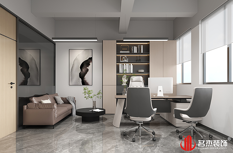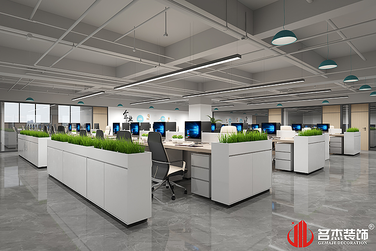 前廳區域采用企業的logo色系來作為點綴的色調,加上一點弧形元素來作為空間的點睛設計手法,同時搭配圓形吊頂,讓整體空間變得更加有趣。其他辦公裝修設計空間區域采用的是時尚簡約的風格去搭建,讓簡約的元素能夠進入到每一個角落當中,更好的展示企業的氛圍。