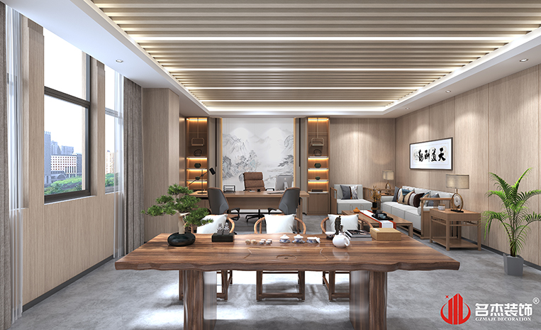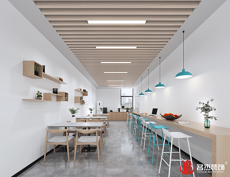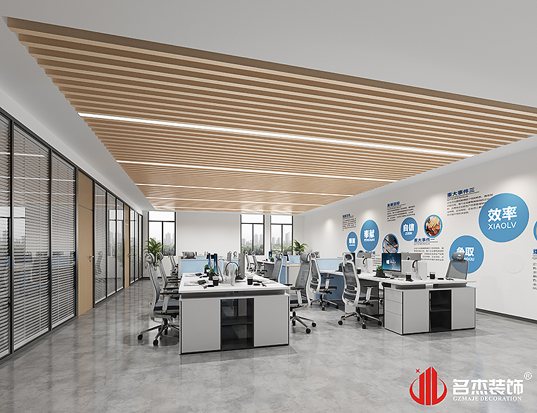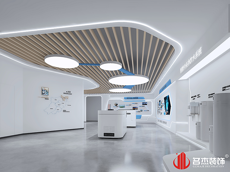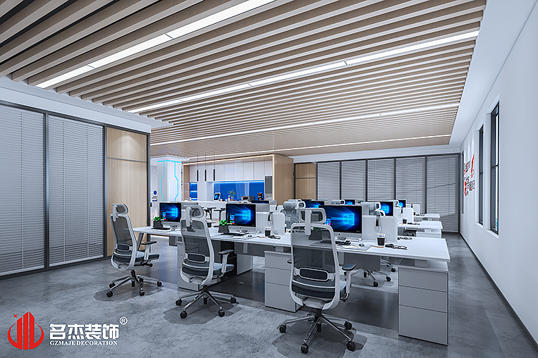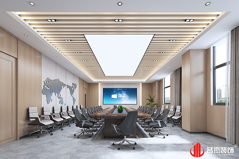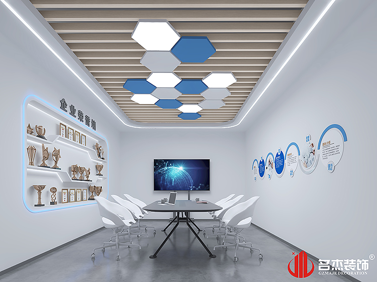 由于該行業(yè)是屬于高新科技行業(yè),設(shè)計團(tuán)隊(duì)在整個辦公室裝修設(shè)計空間加入木色的吊頂,讓空間的格調(diào)不再屬于冷色調(diào),同時在部分區(qū)域加入科技的元素,響應(yīng)出該行業(yè)的科技屬性。在展廳區(qū)域則是特意使用上多邊形的木色吊頂,沿著動線來構(gòu)造,形成一種呼應(yīng)。