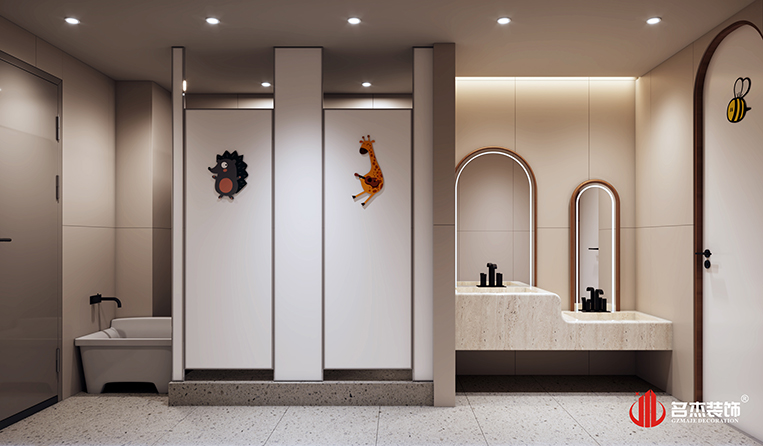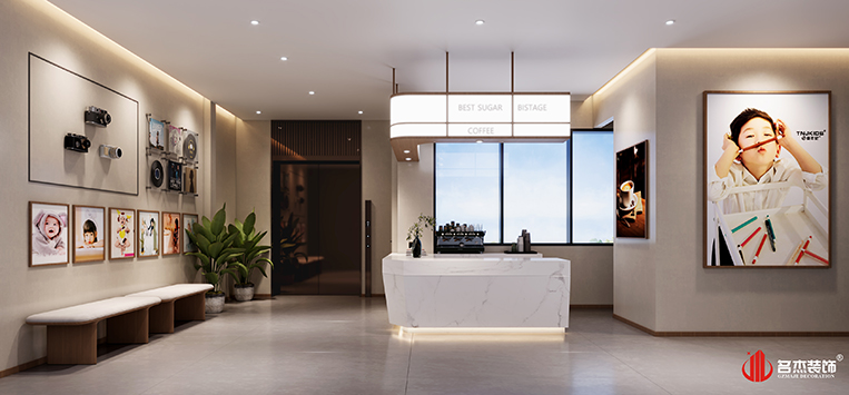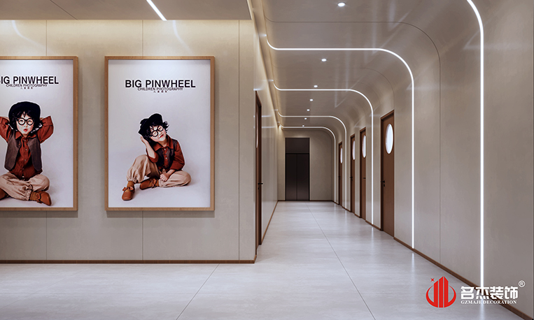 設計團隊在前臺區域使用比以往更多的圓弧形元素來作為辦公室裝修設計空間的主打設計要素,來避免孩子們碰傷的可能性,這樣的做法也是能夠讓空間的設計感更加強烈。家具的選擇上面也是選擇較為百搭的白色和原木色作為主要方向,呼應空間的同時,還能夠增加空間的設計層次感。而其他區域則是選擇較為常規的做法,通過對材質的選擇,打造出不同以往的設計風格。整體空間給人的感覺就是舒適,簡約而不簡單,同時也能夠符合兒童攝影的定位。