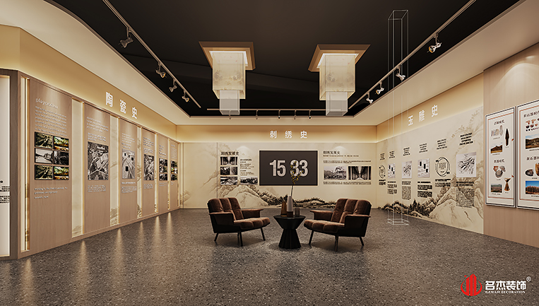 設(shè)計(jì)團(tuán)隊(duì)在前臺(tái)區(qū)域使用圓形吊頂,輔以具有線條美的燈具,配合中式傳統(tǒng)的配色來(lái)打造這個(gè)前臺(tái)區(qū)域,讓這個(gè)區(qū)域看起來(lái)帶有濃濃的新中式風(fēng)格。在展廳區(qū)域,則是使用仿燈籠造型的燈具,配合展廳的展品,來(lái)讓這個(gè)空間散發(fā)出更加濃郁的傳統(tǒng)氛圍。而在另一個(gè)展廳則是使用紅色和藍(lán)色,在視覺(jué)上形成一種強(qiáng)烈的沖擊感,讓空間看起來(lái)更加具有特色。#藝術(shù)館裝修設(shè)計(jì)#